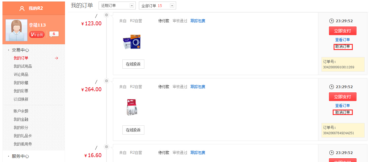 登录后,你可以点击页面右上方的"个人中心-我的订单"进入订单界面
