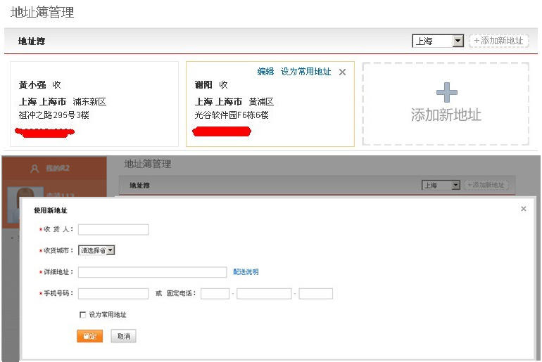 在"个人中心"的"地址簿管理"中您可以对您的收货地址信息进行管理编辑。设置默认收货地址,删除收货地址,新增收货地址。