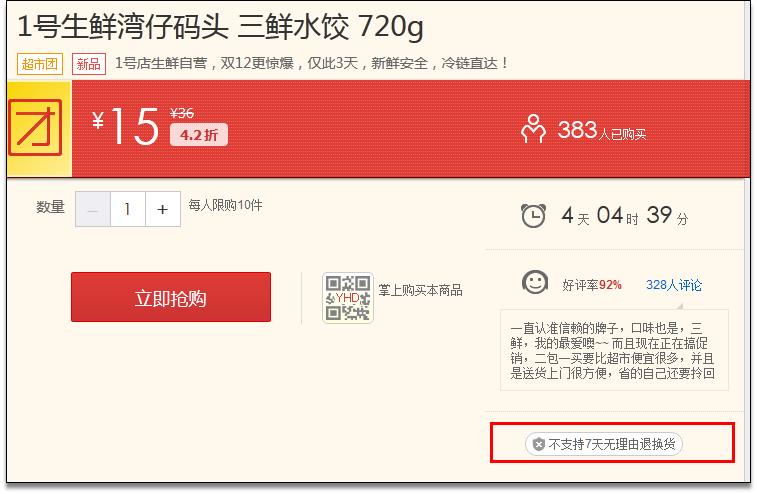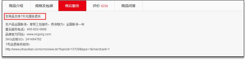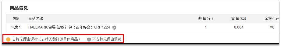 对于上述不享受“7天无理由退货”政策的商品,1号店会在相关商品页面给予您提示,并在您提交订单购买时请您确认,具体示例图如下: